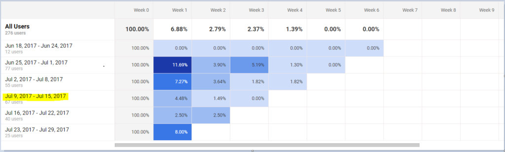 Next month I’m going to start paying more attention to user retention. Here’s a look at my user retention to date.